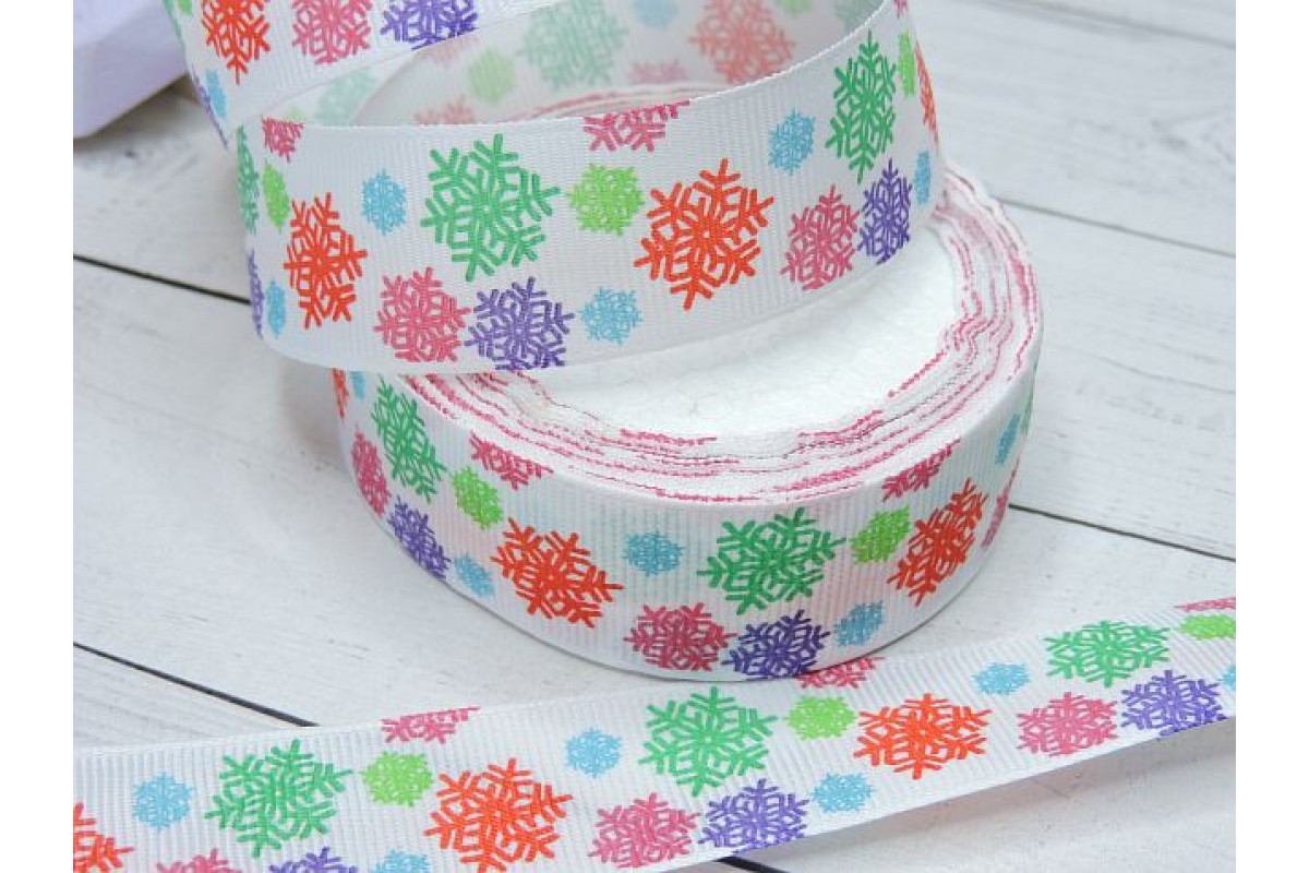 Лента репсовая 25 мм с рисунком "Снежинки"