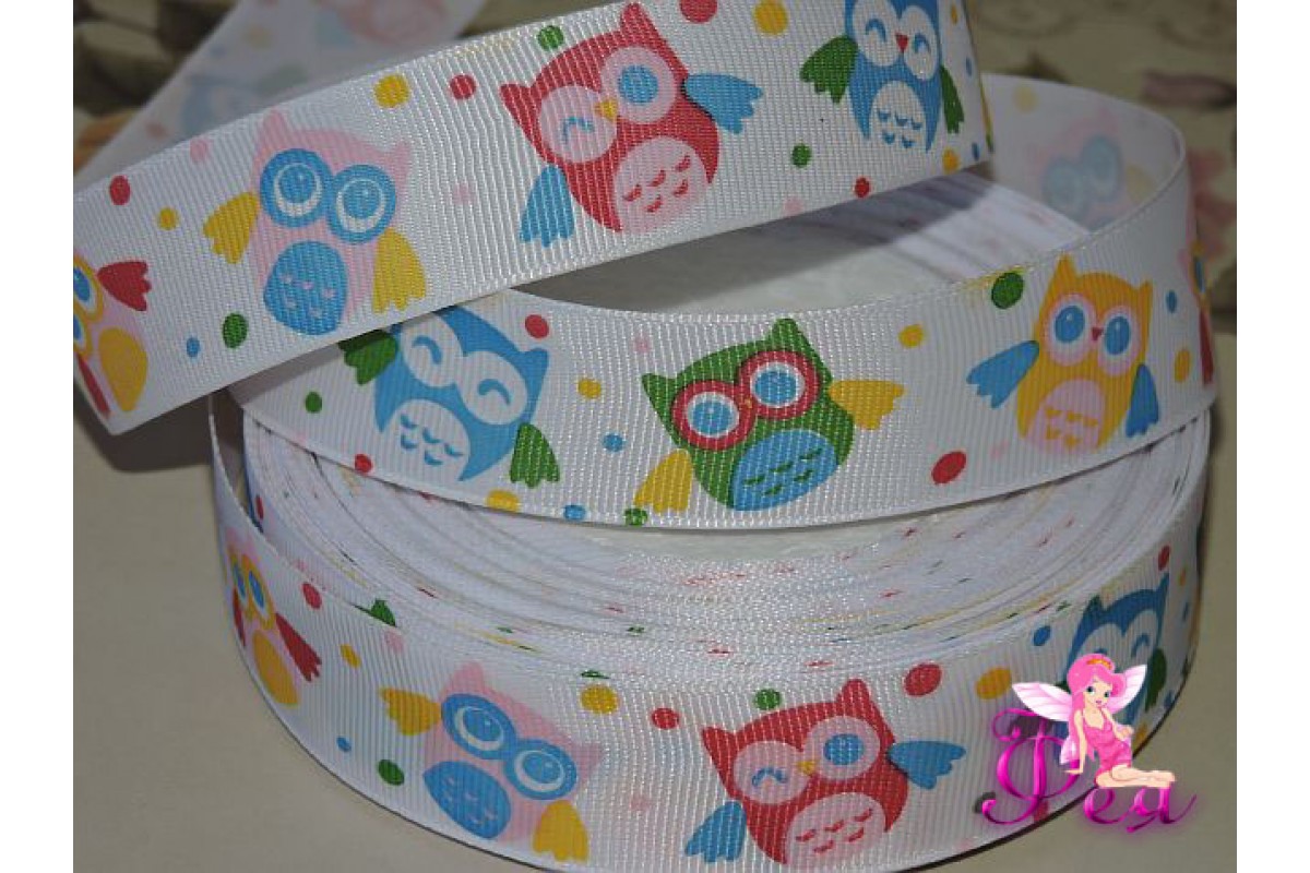 Лента репсовая 25 мм с рисунком "Совы" - 1м