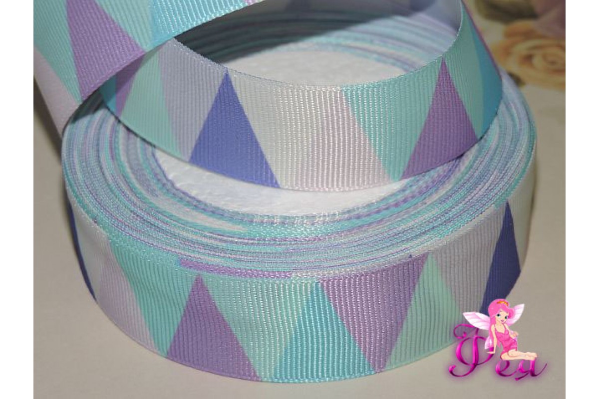 Лента репсовая 25 мм с рисунком "Треугольники" - 1м