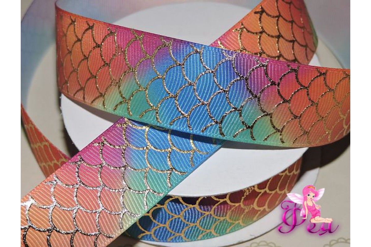 Репсовая лента 25 мм с рисунком "Чешуя" декоративное покрытие - 1м