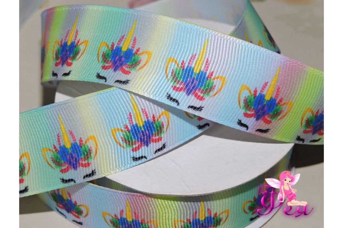 Репсовая лента 25 мм с рисунком "Единорожка №6" - 1м