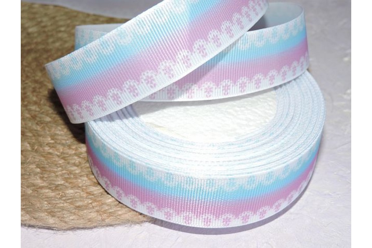 Репсовая лента 25 мм с рисунком "Градиент" . цв. розово-голубой - 1 м