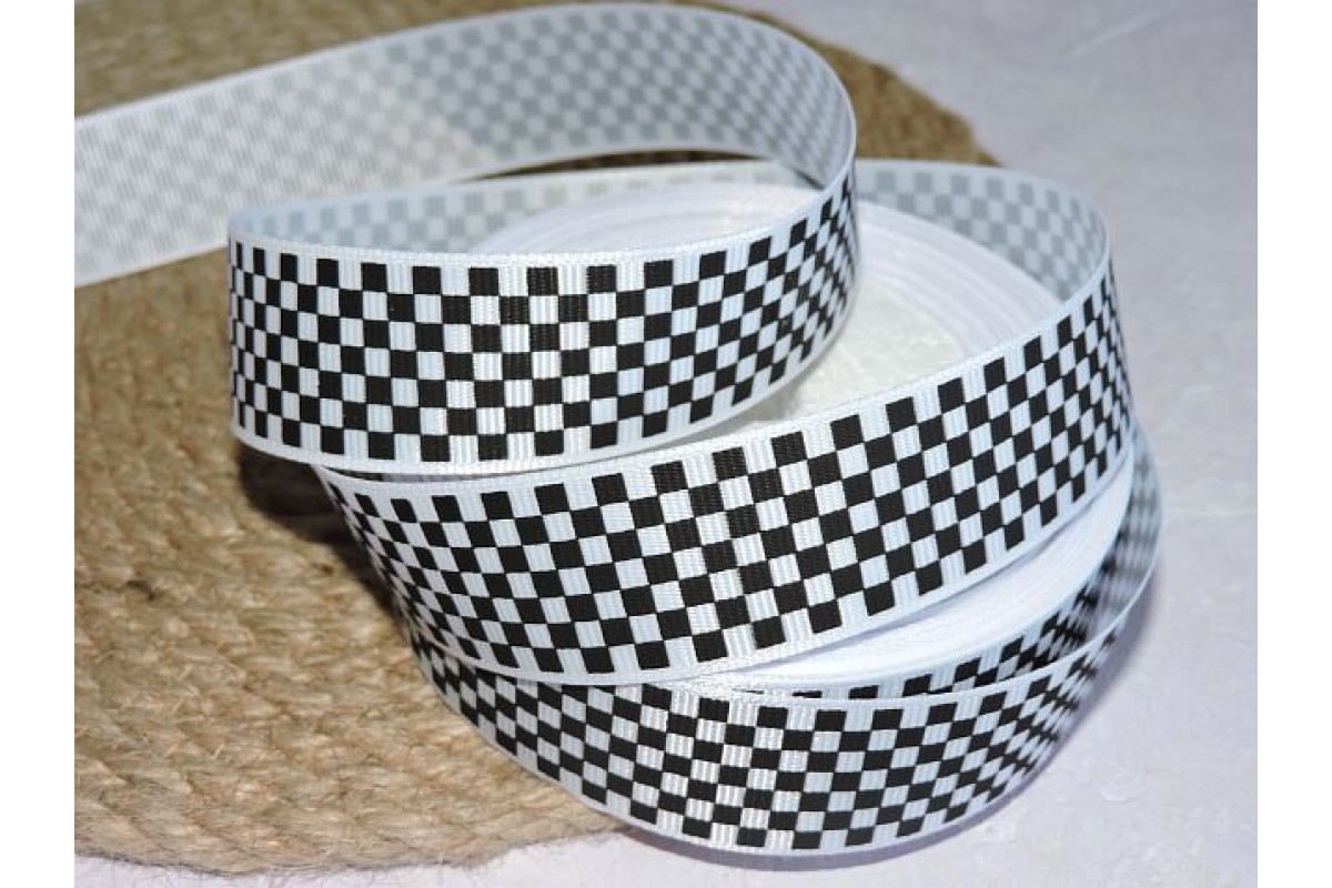 Репсовая лента 25 мм с рисунком " Клетка", цв. - 1 м, 5520, Китай, 25 мм