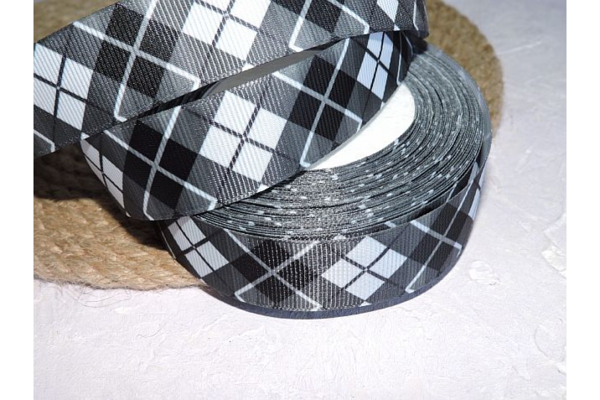 Репсовая лента 25 мм с рисунком "Клетка", цв. черно-белая - 1 м