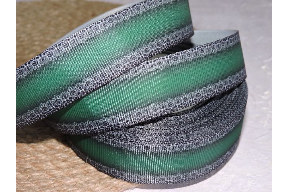 Репсовая лента 25 мм с рисунком "Кружевная окантовка" . цв. черно-зеленый - 1 м