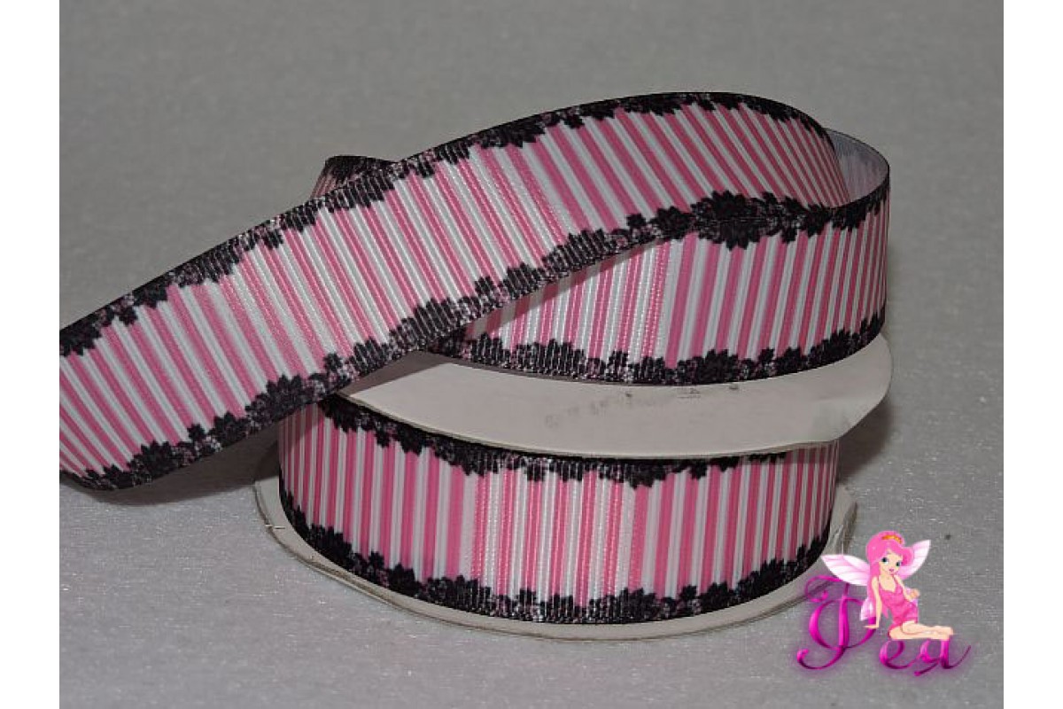 Репсовая лента 25 мм с рисунком " Кружево, полоска"