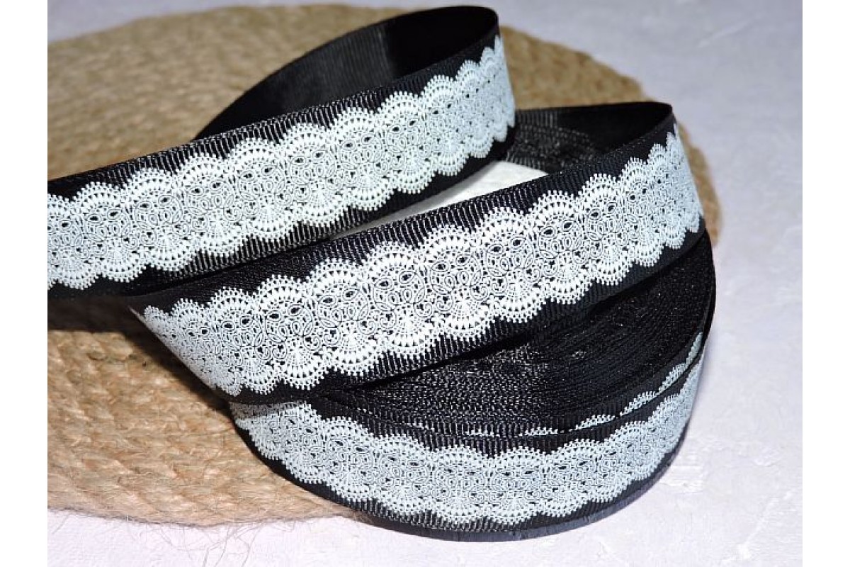 Репсовая лента 25 мм с рисунком "Кружево ", цв. черный - 1 м