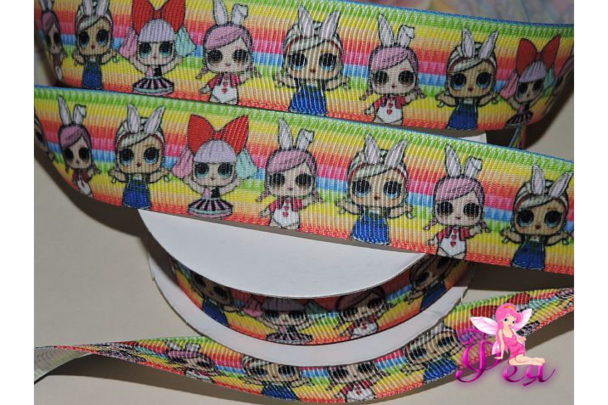 Репсовая лента 25 мм с рисунком " ЛОЛ куколки" - 1м