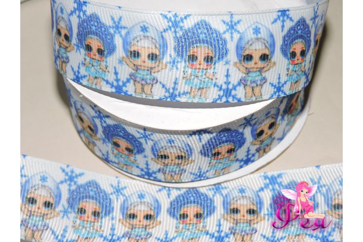 Репсовая лента 25 мм с рисунком " ЛОЛ снегурочки" - 1м