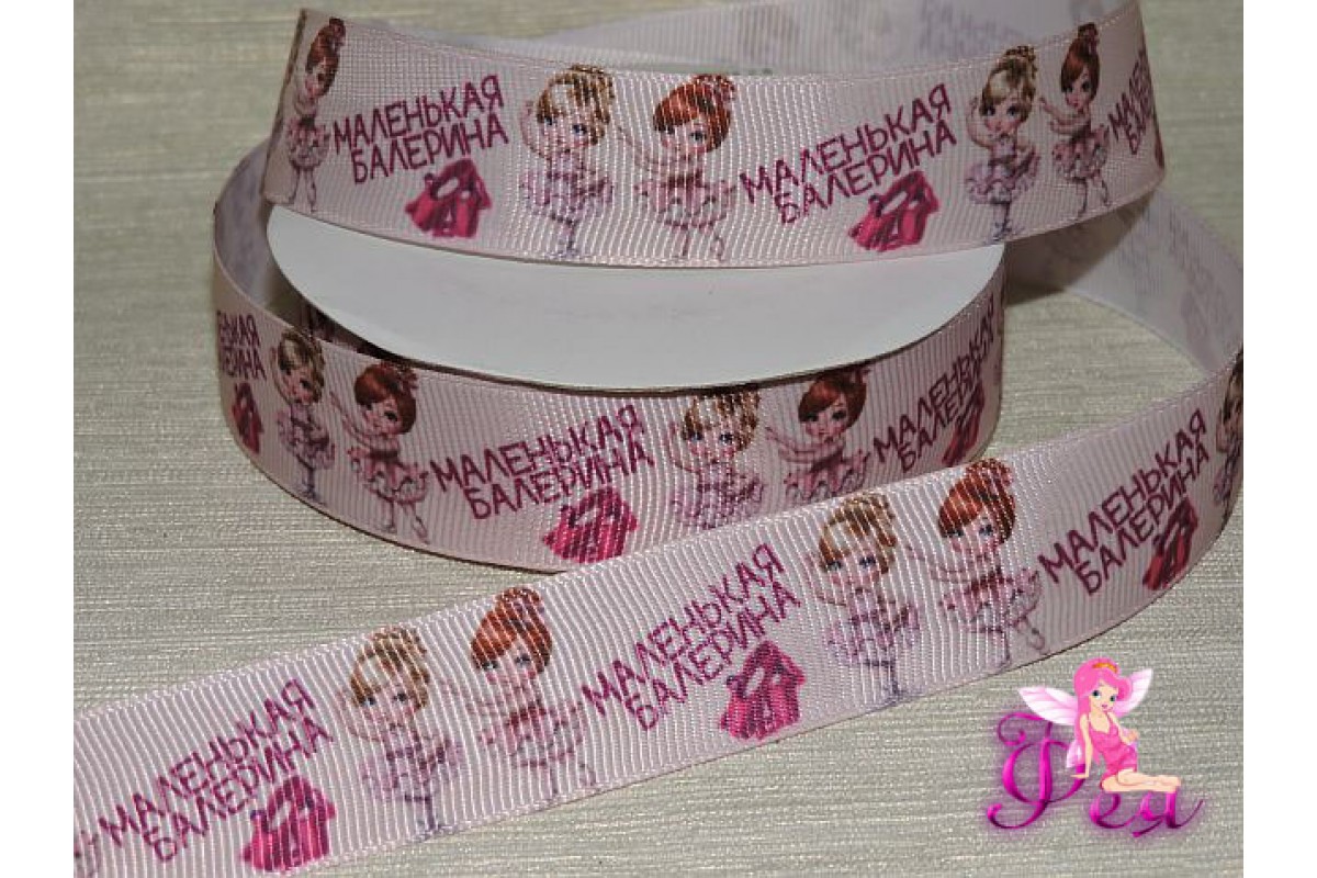 Репсовая лента 25 мм, с рисунком "маленькая балерина"