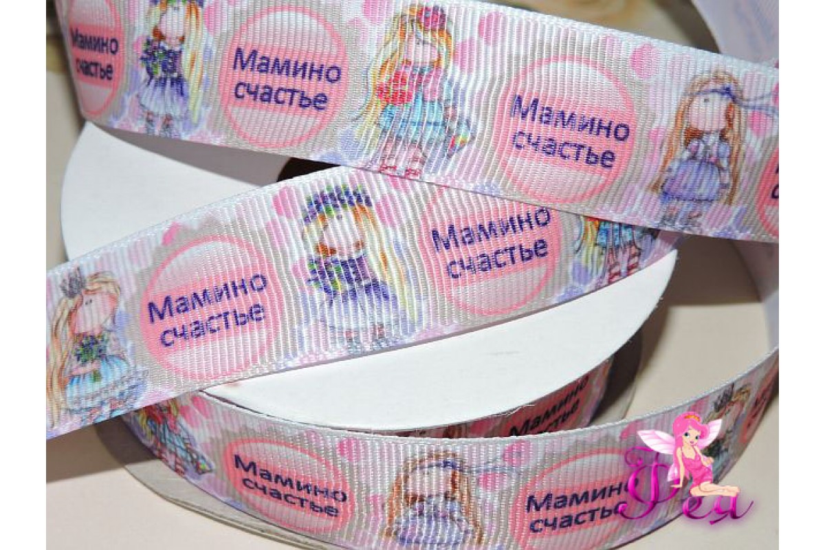 Репсовая лента 25 мм с рисунком " Мамино счастье" - 1м