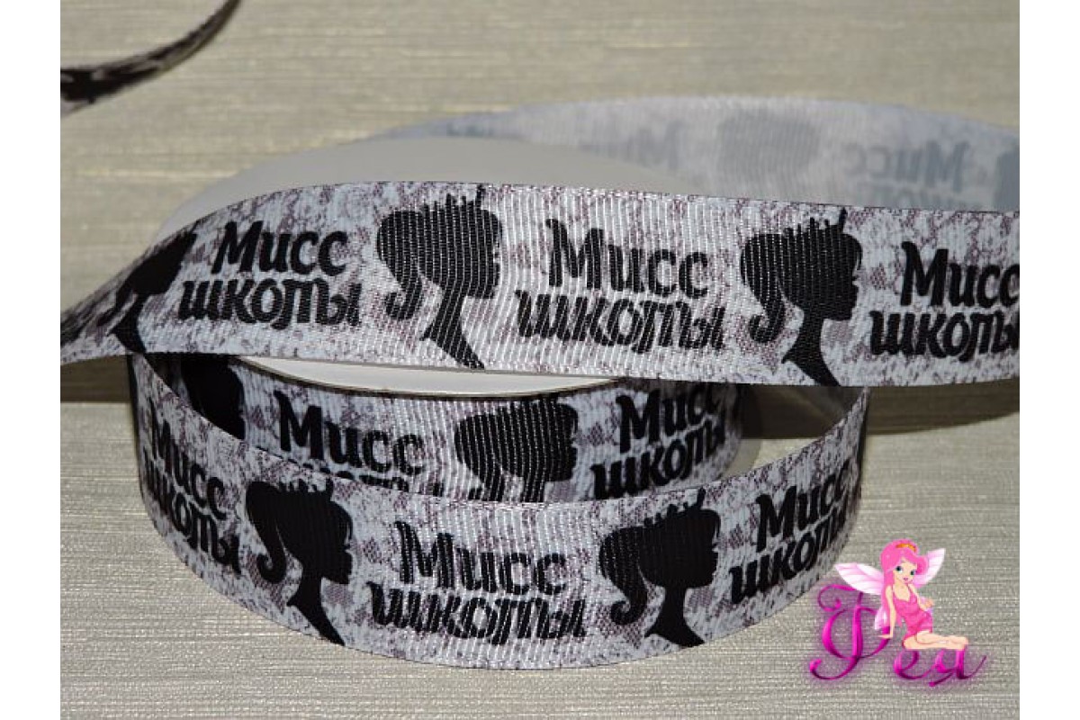 Репсовая лента 25 мм, с рисунком "Мисс школы"