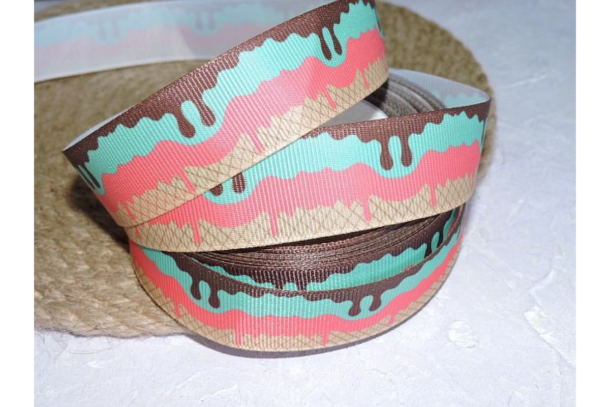 Репсовая лента 25 мм с рисунком "Мороженое", - 1 м, 2140, Китай, 25 мм