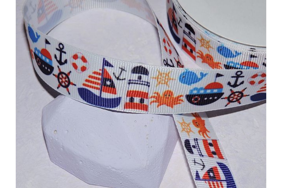 Репсовая лента 25 мм с рисунком "Морской №2" - 1 м, 128-872, Китай, 25 мм