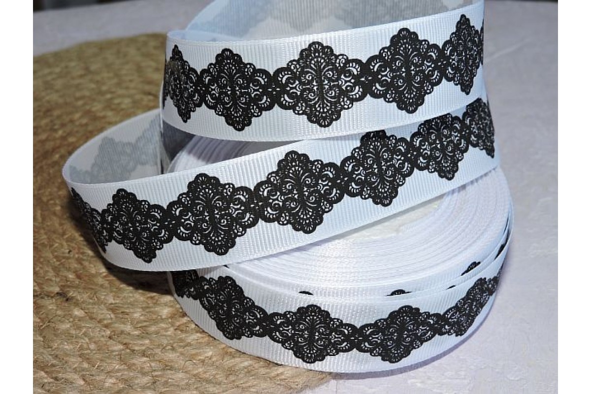 Репсовая лента 25 мм с рисунком "Орнамент ромбы", цв. белый - 1 м, 1051, Китай, 25 мм