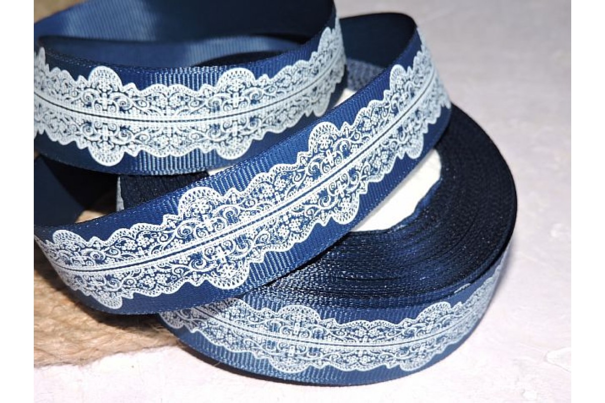Репсовая лента 25 мм с рисунком "Орнамент ", цв. темно-синий - 1 м, 1061, Китай, 25 мм