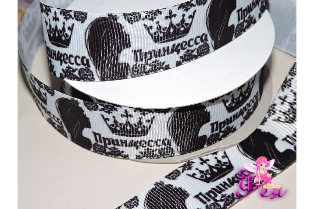 Репсовая лента 25 мм с рисунком " Принцесса" - 1м