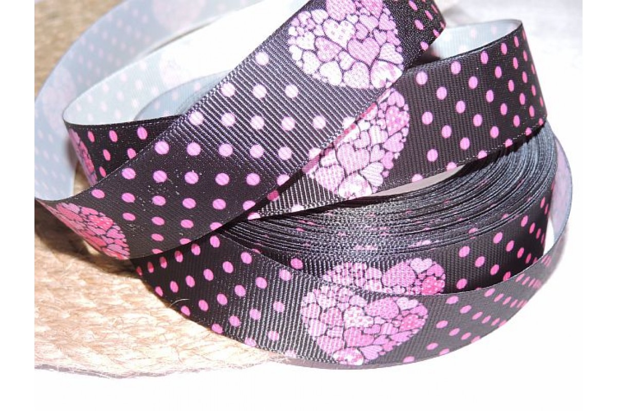 Репсовая лента 25 мм с рисунком "Сердечки розовые " - 1 м
