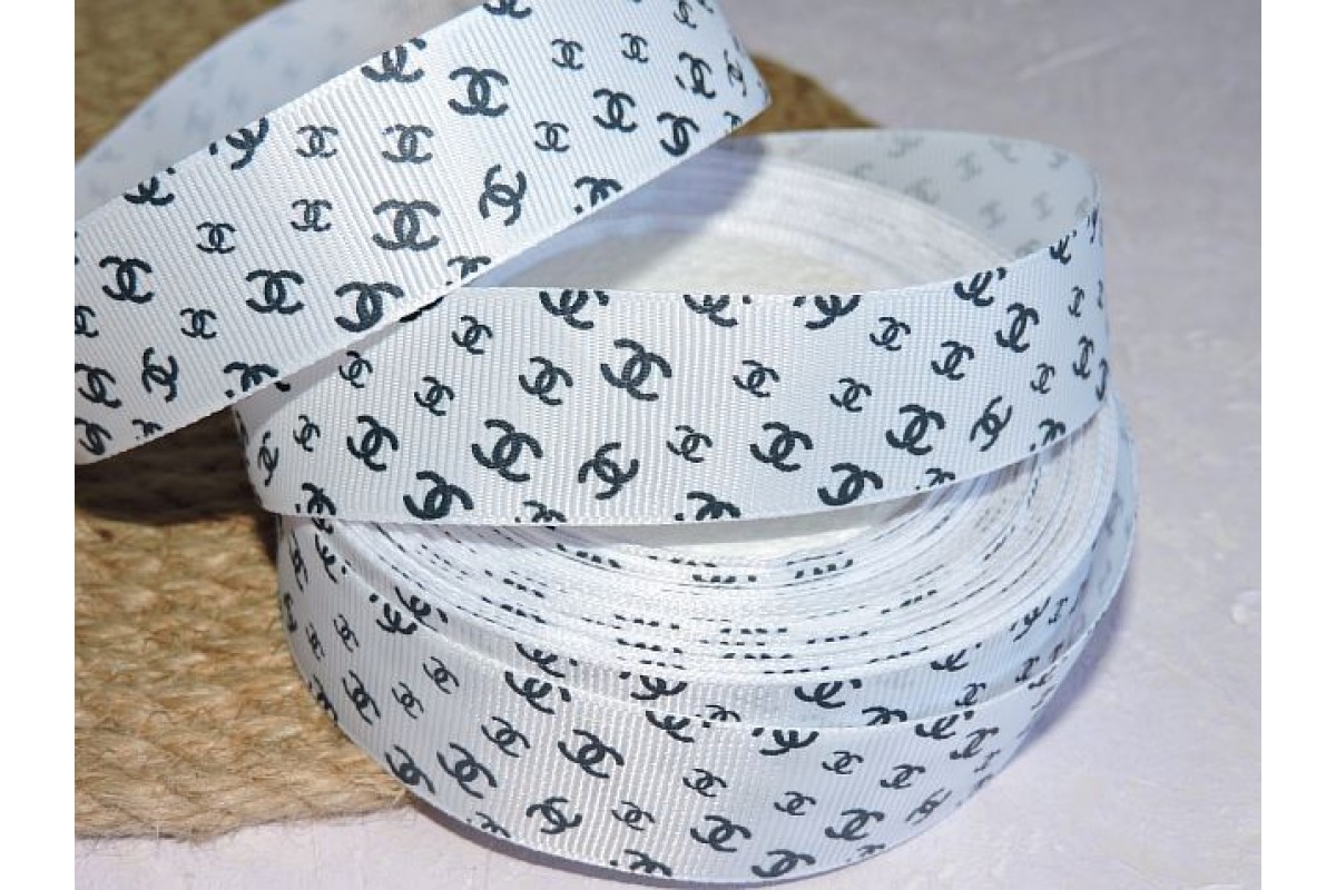 Репсовая лента 25 мм с рисунком " Шанель", цв. белый - 1 м