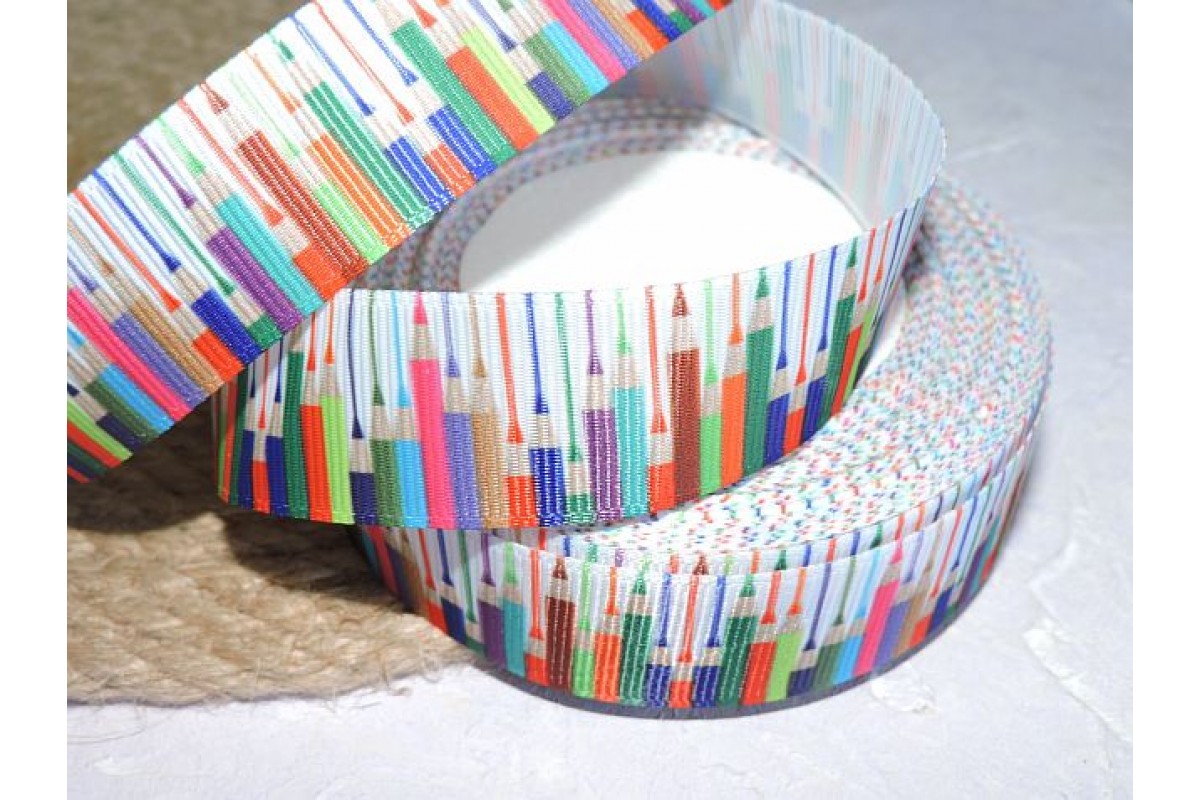 Репсовая лента 25 мм с рисунком "Цветные карандаши", - 1 м