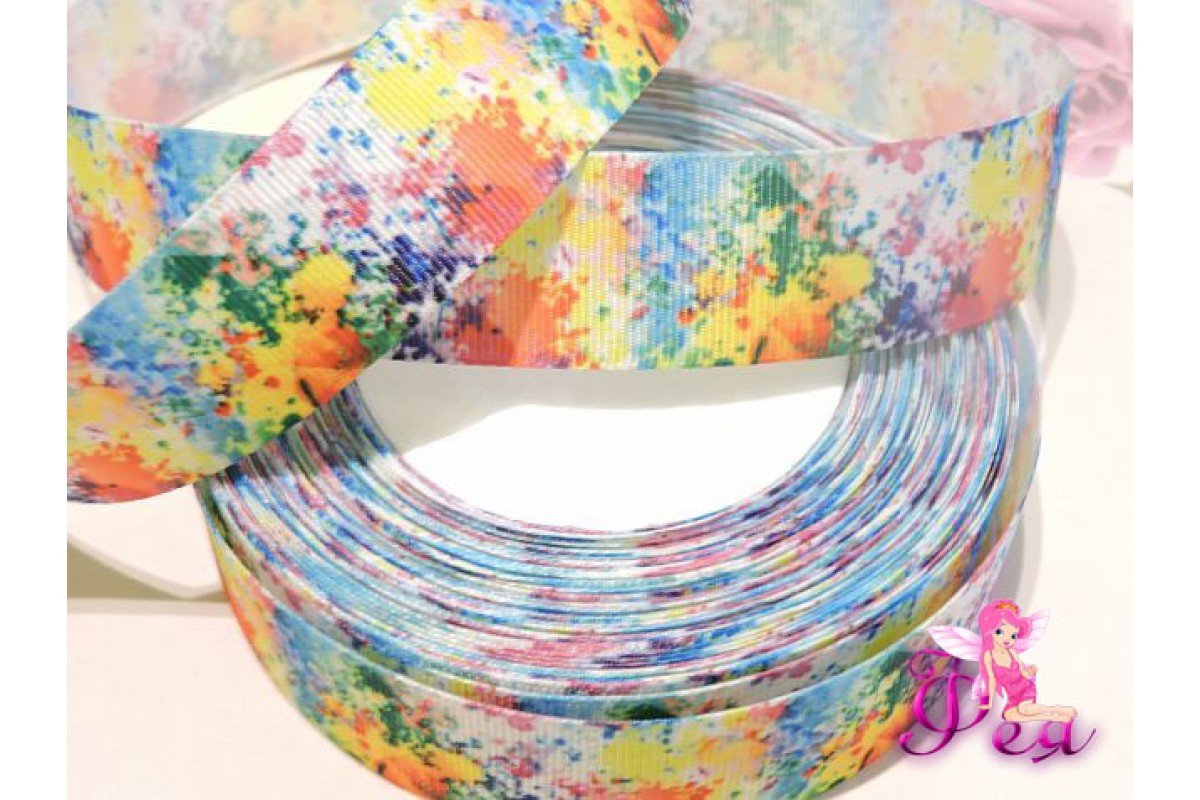 Репсовая лента с рисунком 25 мм, "Краски" - 1м, Ф 192/70, Китай, 25 мм