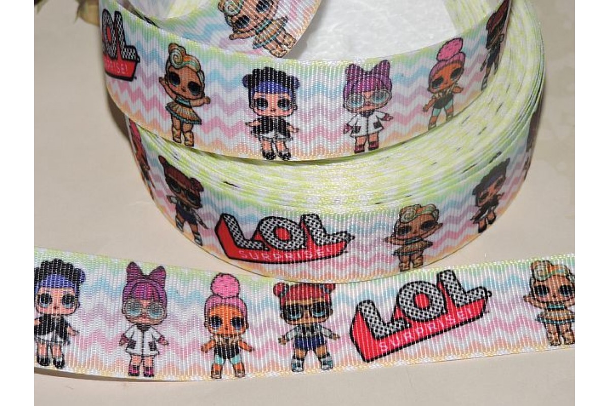 Репсовая лента с рисунком 25 мм, "ЛОЛ" , цв. микс зигзаги - 1м