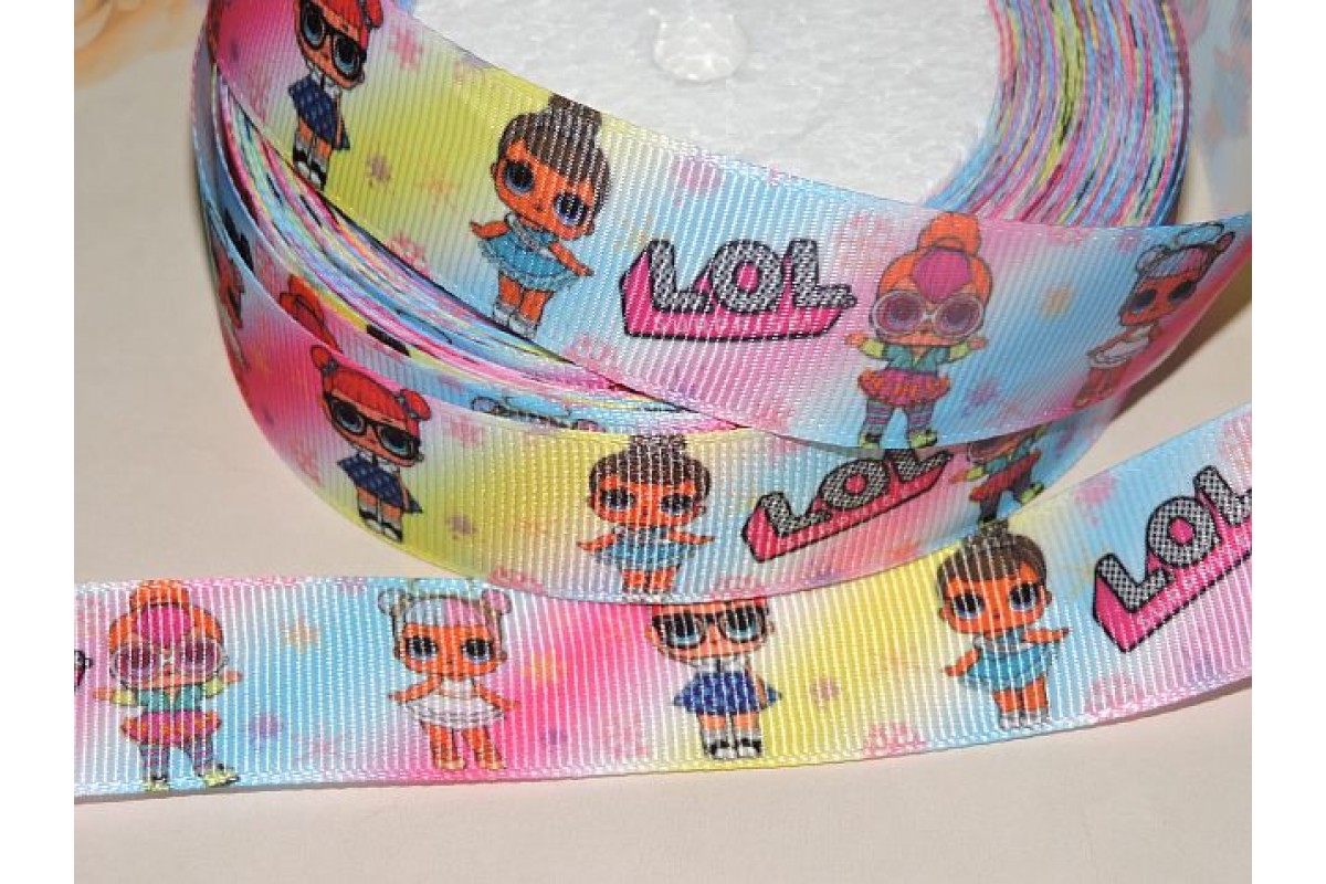 Репсовая лента с рисунком 25мм "ЛОЛ" цв. радуга - 1м