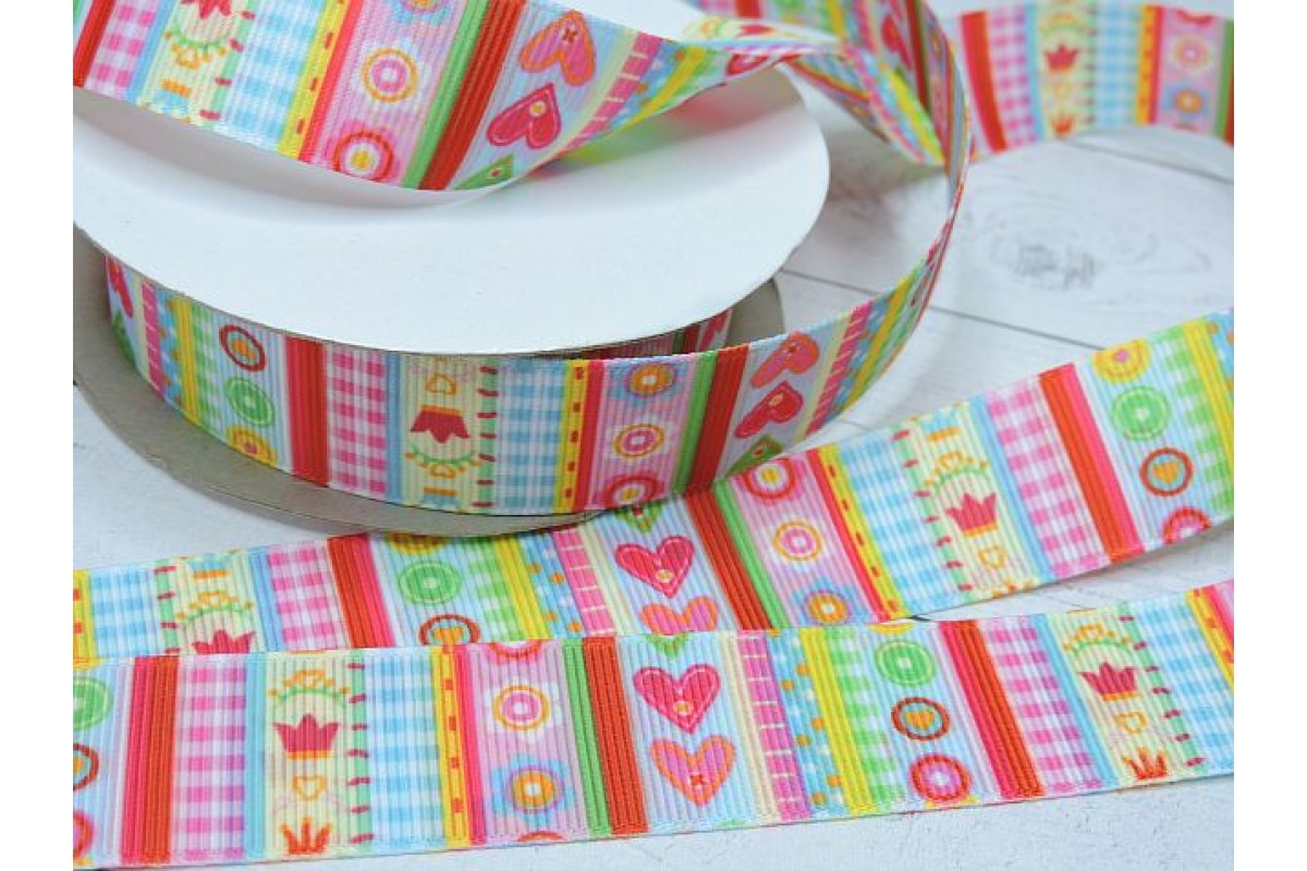 Репсовая лента 25 мм двусторонняя с рисунком "Забавные узоры"