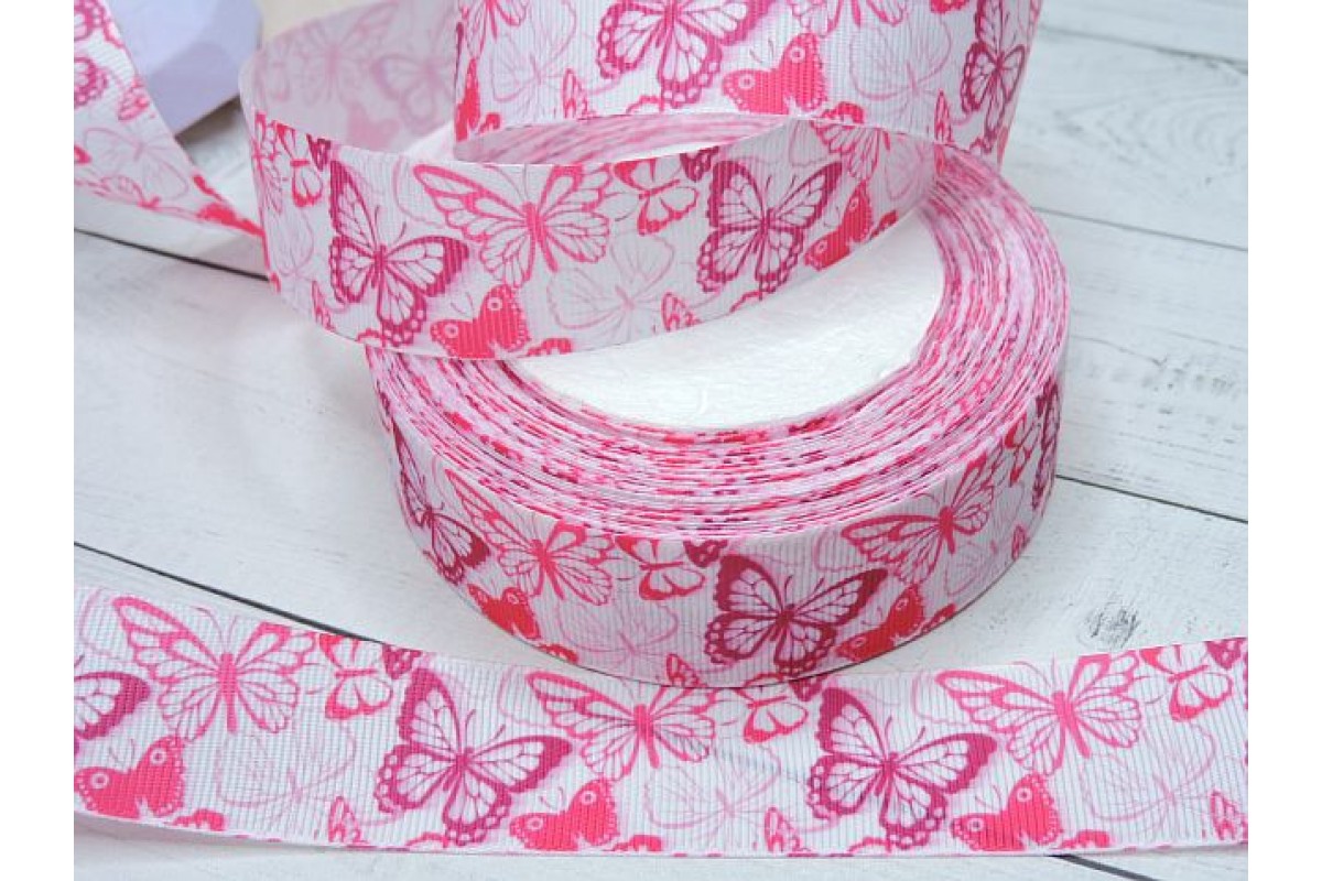 Репсовая лента 25 мм с рисунком "Бабочки"