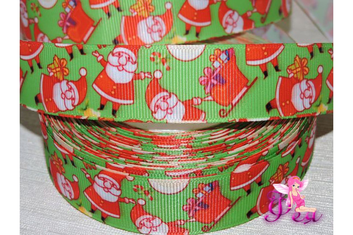 Репсовая лента 25 мм с рисунком "Санта" (1 м)