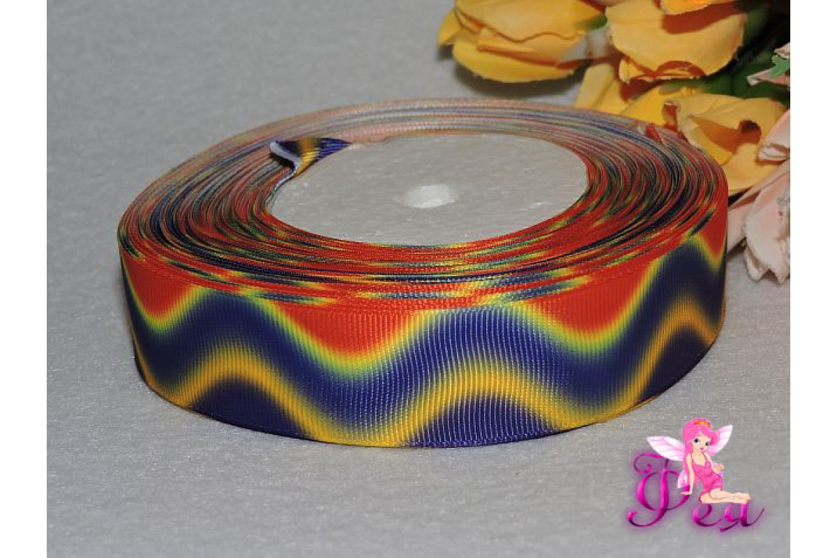 Репсовая лента градиент 25 мм "Волны" (красные, желтые, фиолетовые)