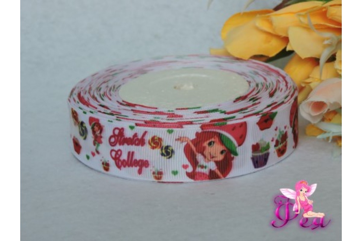 Репсовая лента с рисунком "Девочка-клубничка" (мультики, 3D) 25мм