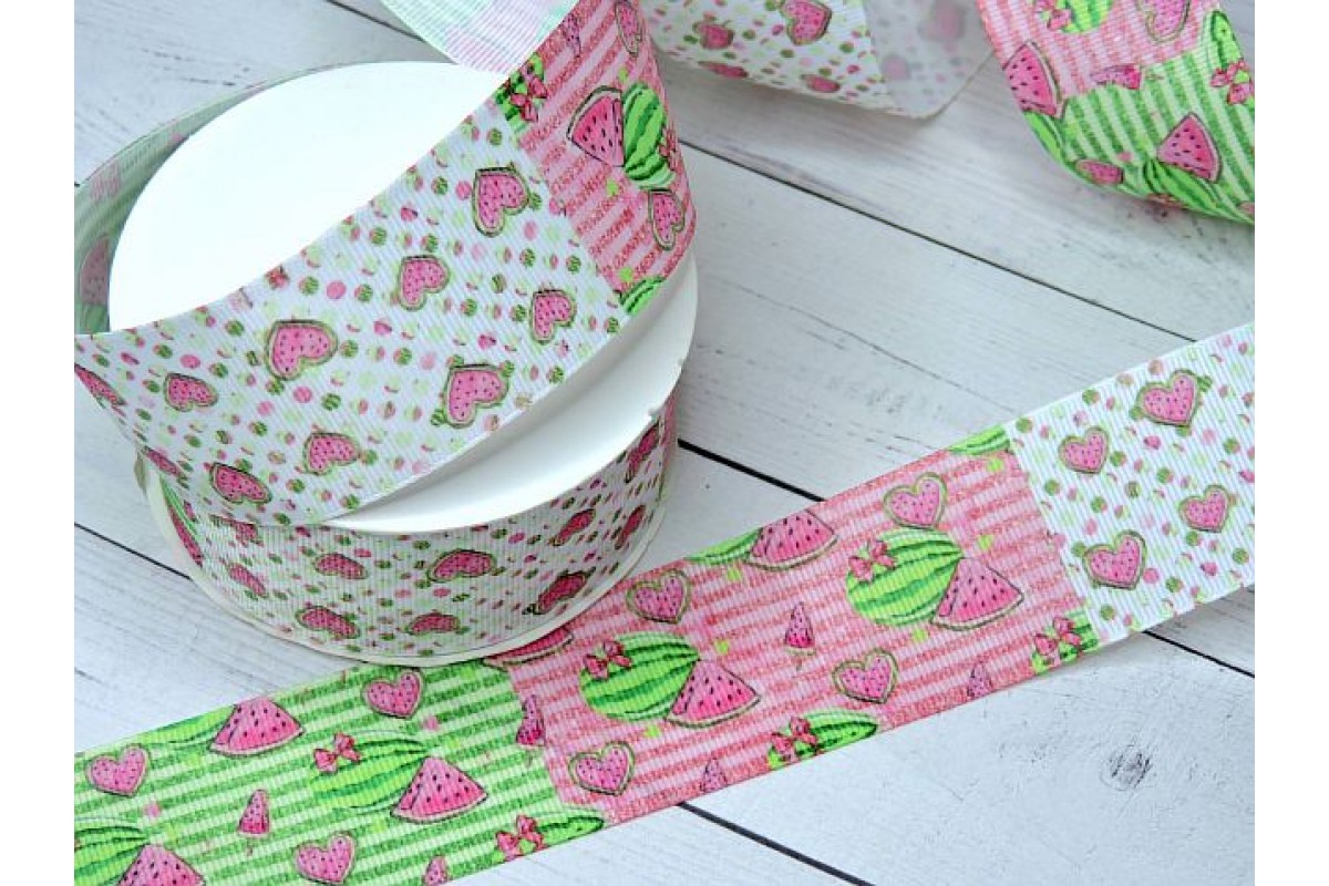Лента репсовая 40 мм с рисунком ассорти "Арбузики" - 1 м.