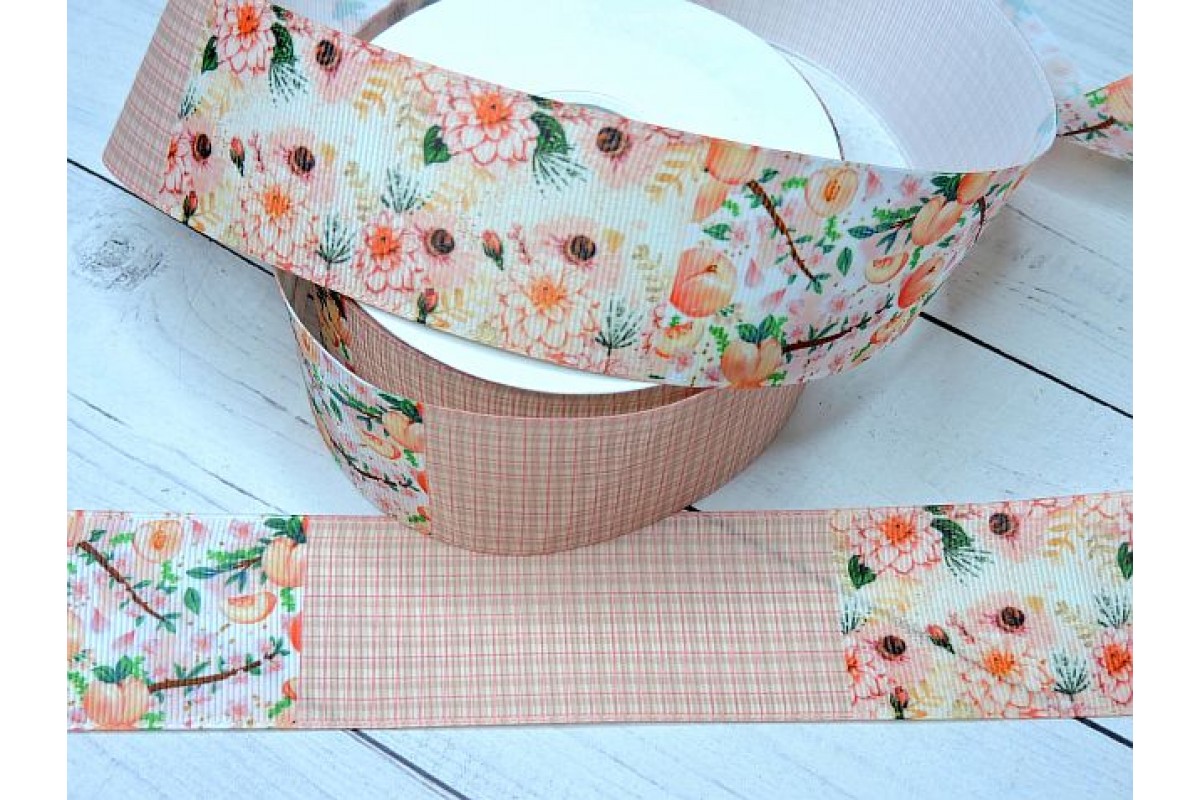 Лента репсовая 40 мм с рисунком ассорти "Персики" - 1 м.