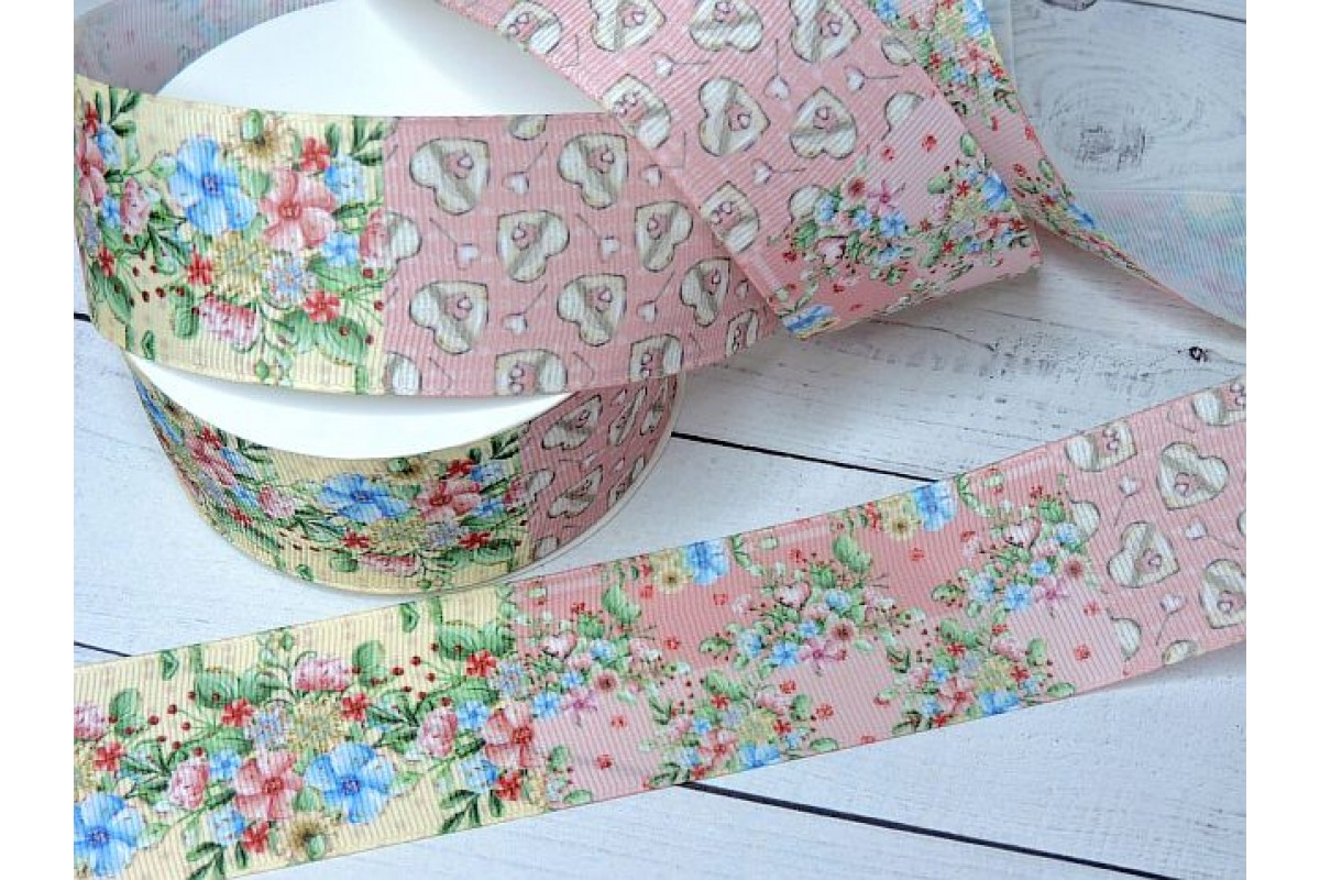 Лента репсовая 40 мм с рисунком ассорти "Цветочки" - 1 м.