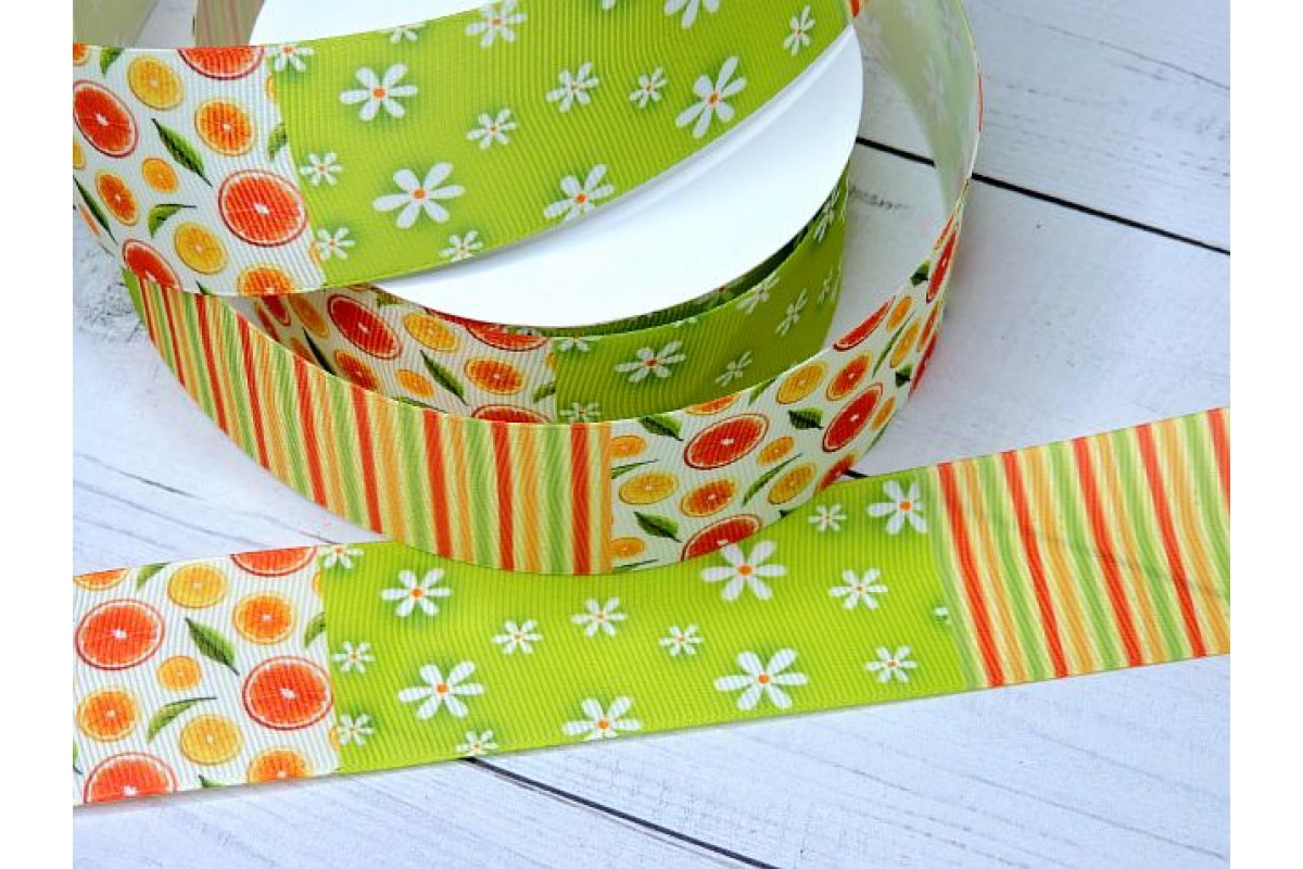 Лента репсовая 40 мм с рисунком ассорти "Цытруссовый" - 1 м., 126-713нов, Китай, 40 мм