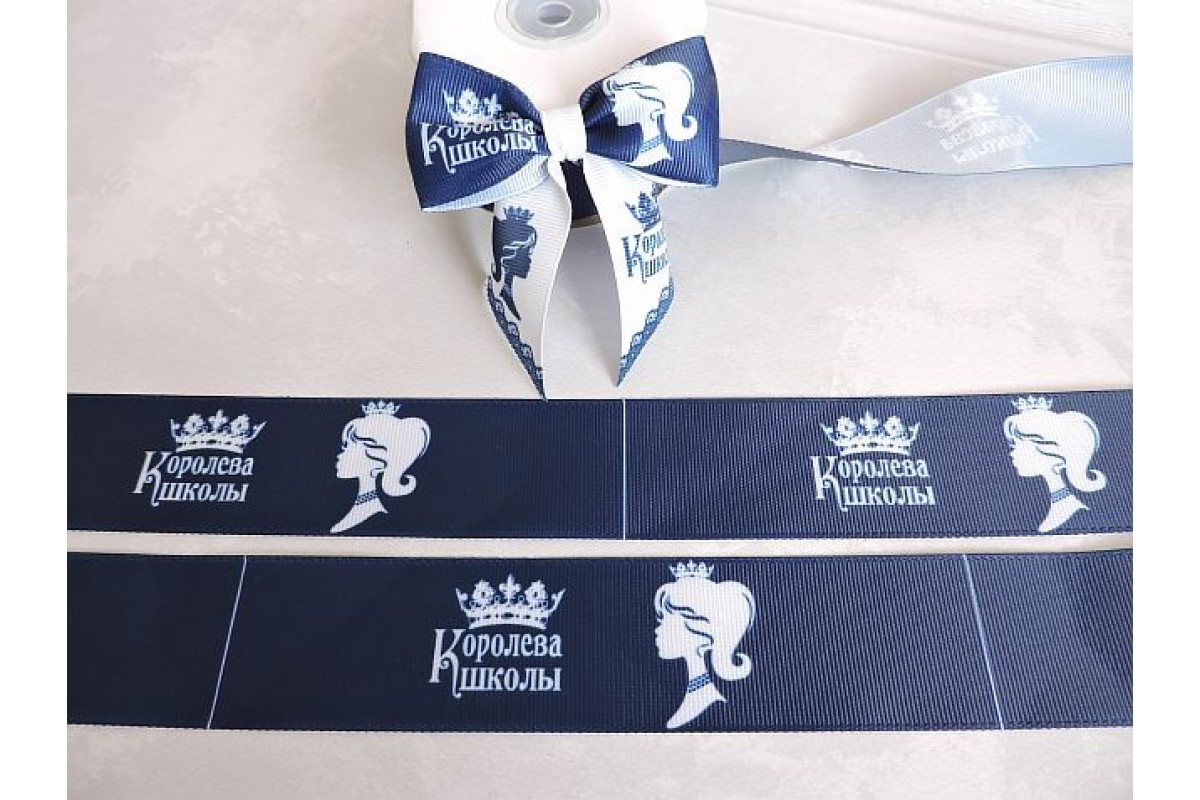 Лента репсовая 40 мм с рисунком "Королева школы", цв. темно-синий - 1 купон.