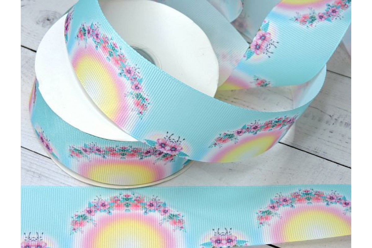 10792, Лента репсовая 40 мм с рисунком "Цветочки №3" лепесток круглый - 1 м., , 1.80BYN, 126-729нов, Китай, 40 мм
