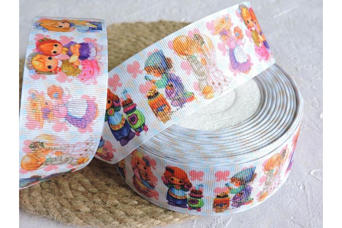 Репсовая лента 40 мм с рисунком "Девочки-хозяюшки" - 1 м