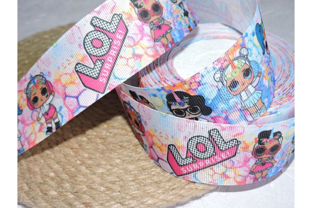 Репсовая лента 40 мм с рисунком "Лол акварель" - 1 м, 0974, Китай, 40 мм