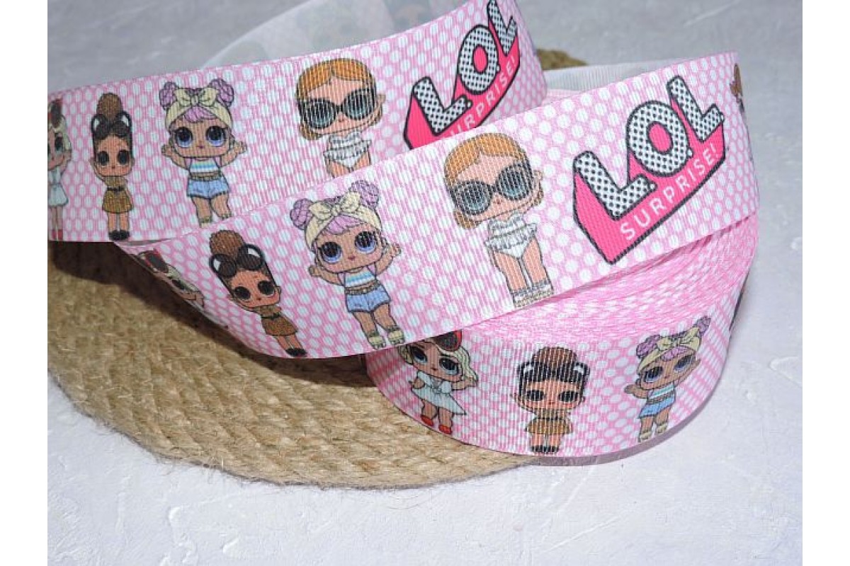 Репсовая лента 40 мм с рисунком "Лол в горошек" - 1 м