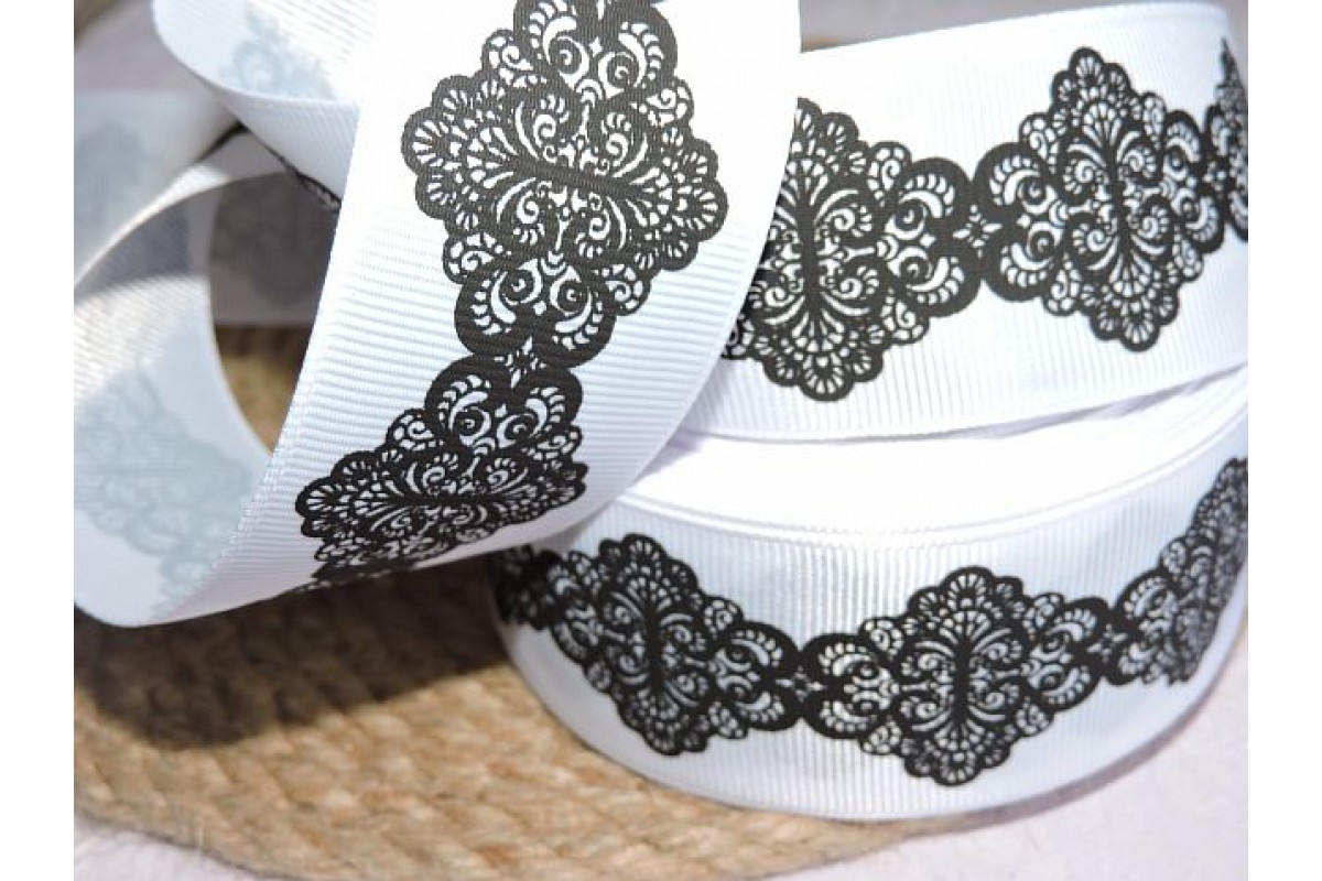 Репсовая лента 40 мм с рисунком "Орнамент" . цв. белый - 1 м