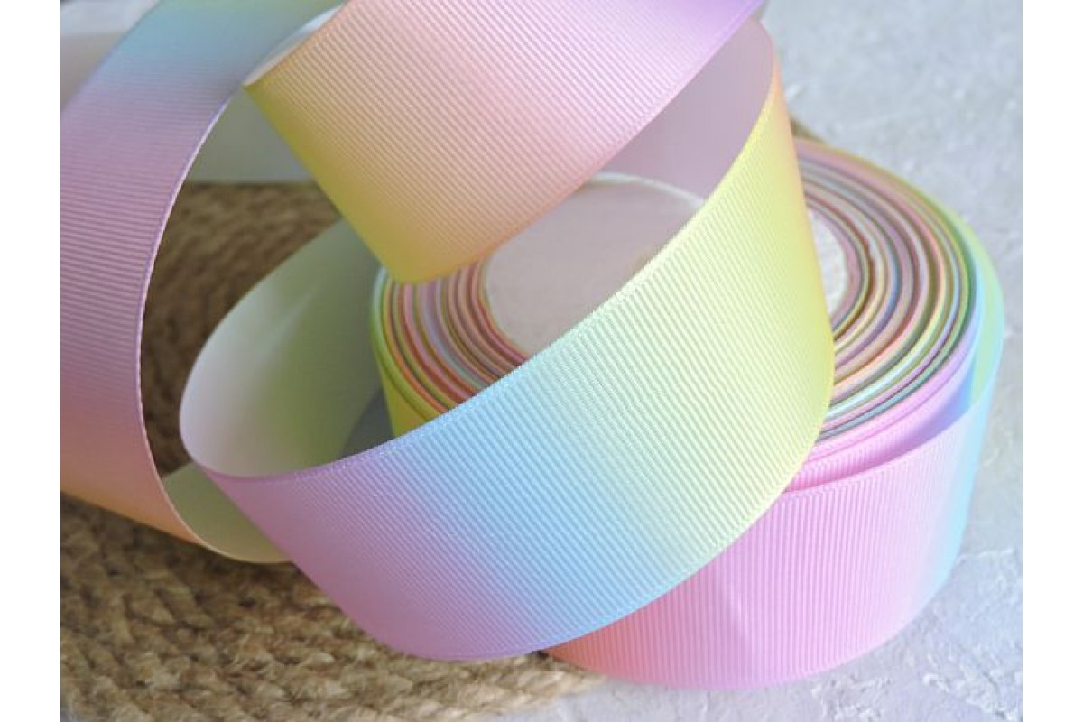 Репсовая лента 40 мм с рисунком "Радуга 2" - 1 м
