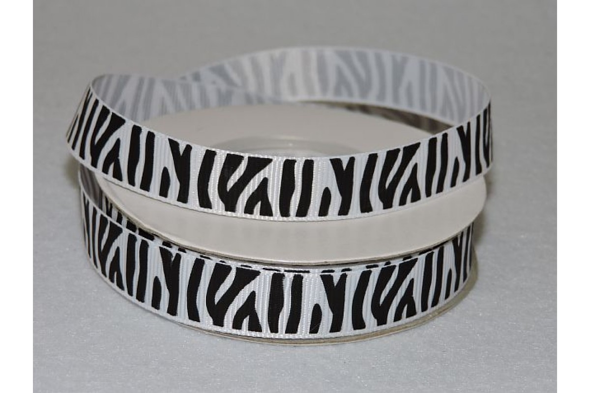 Репсовая лента 15 мм с рисунком , "Зебра", белый