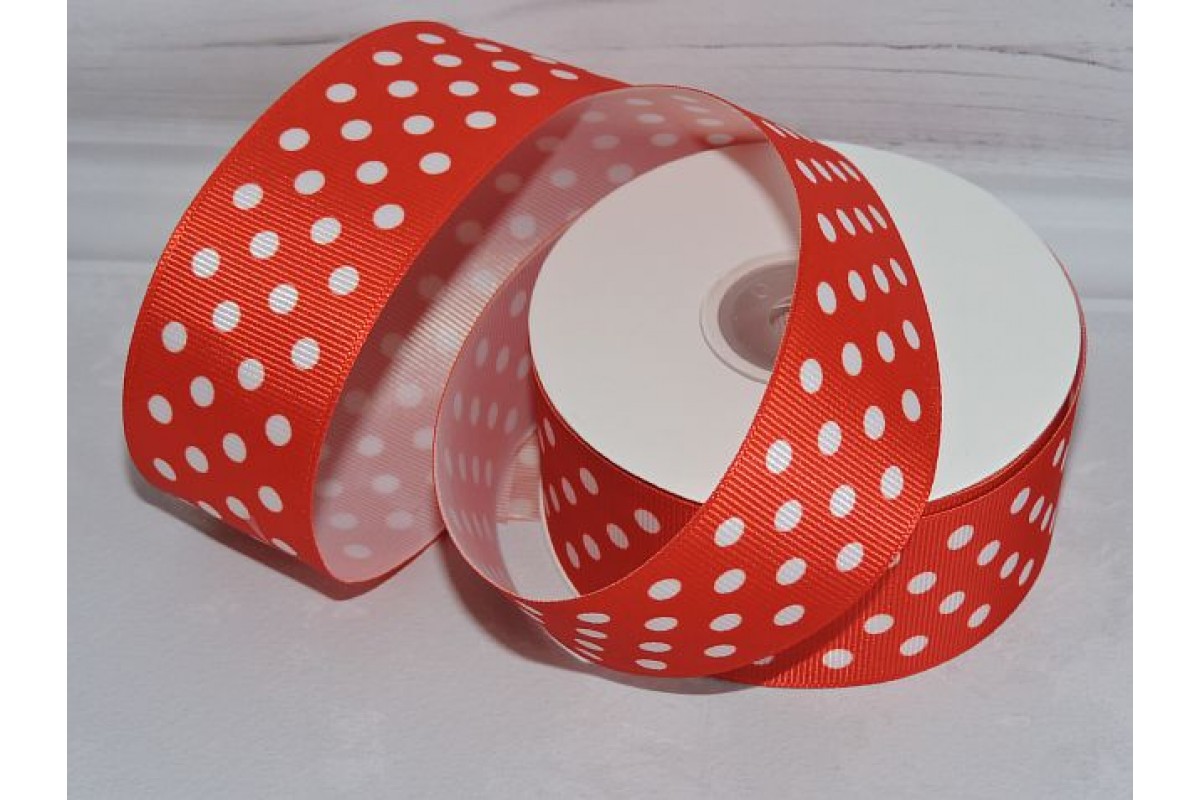 Лента репсовая 40 мм с рисунком "Крупный горох", цв. красный/белый - 1 м.