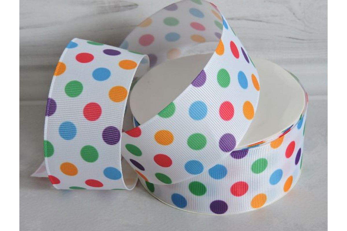 Лента репсовая 40 мм с рисунком "Цветной горох" - 1 м.
