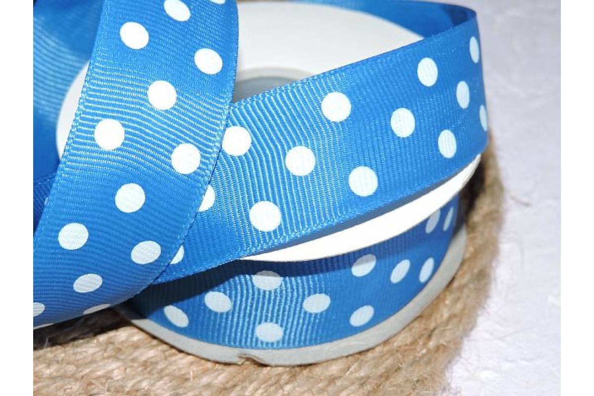 Репсовая лента 25 мм "Крупный горох", цв. синий - 1 м