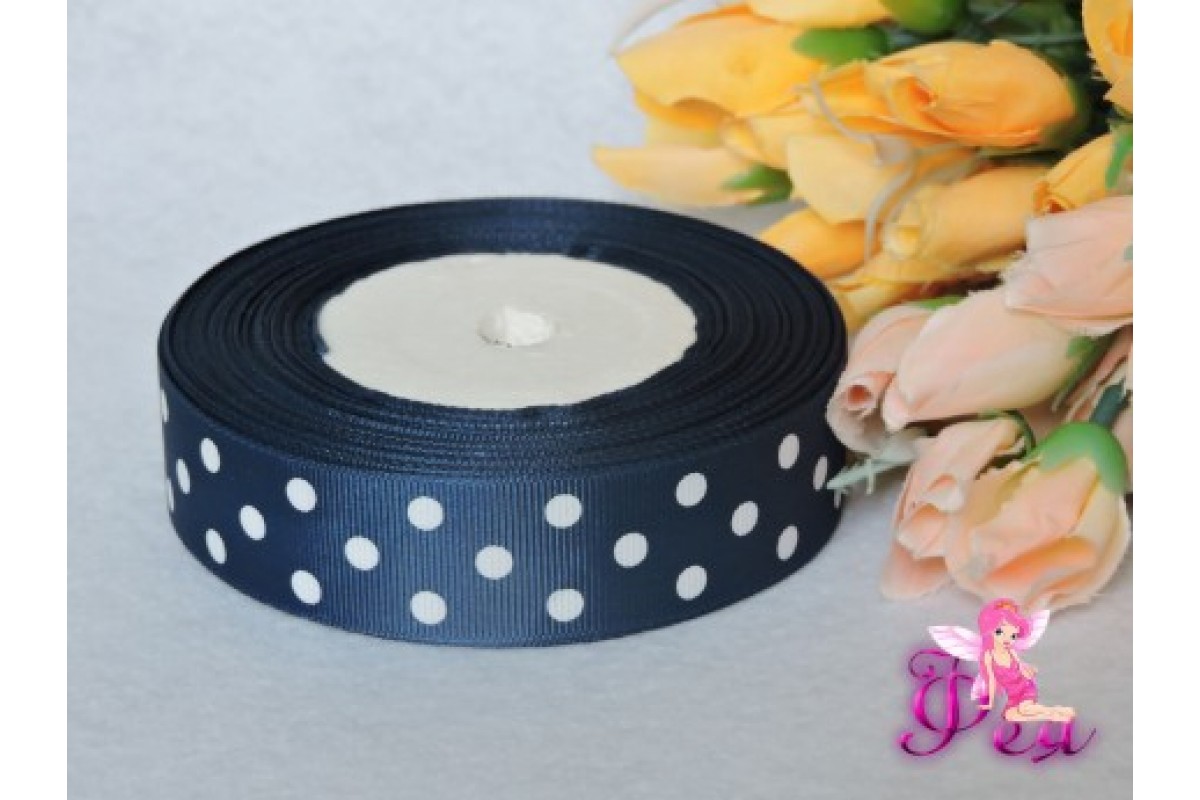 Репсовая лента 25 мм темно-синего цвета с рисунком "Крупный белый горох" L 60/70 25 мм