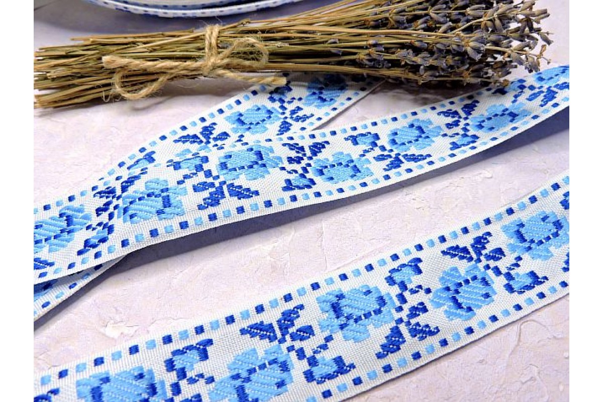 Лента отделочная жаккардовая 34 мм, цв. бело-голубой - 1 м.