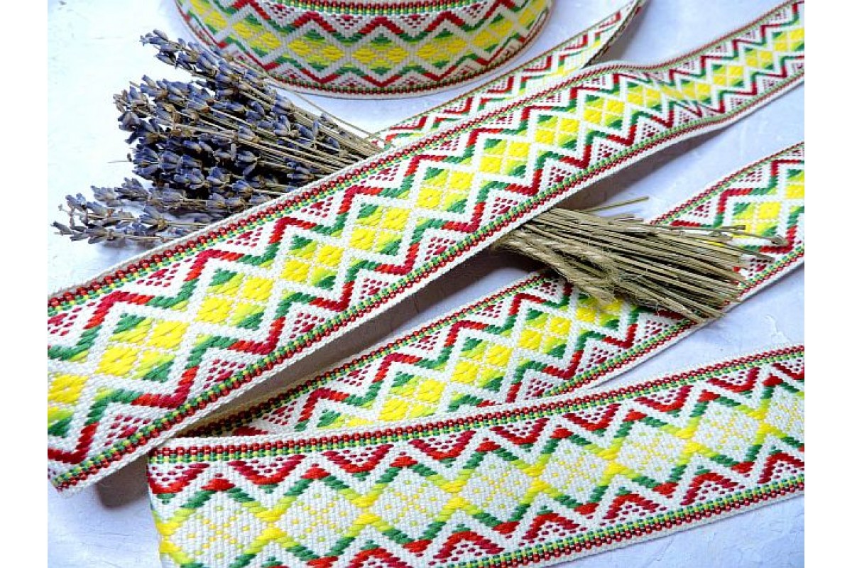 Лента отделочная жаккардовая 39 мм, цв. разноцветный - 1 м., 90410, Беларусь, Текстильные ленты (Производство Беларусь)